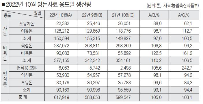 10월 양돈사료 62만톤…올 최고 2022-11-23