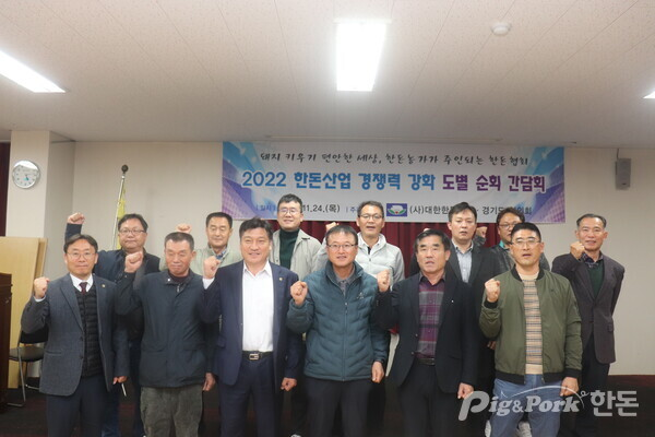 ▲ (사)대한한돈협회는 11월 24일 2022 한돈산업 경쟁력 강화라는 슬로건으로 경기지역 간담회를 개최하고 경기지역 한돈인들의 애로사항을 청취했다. (사진 / 곽상민 기자)