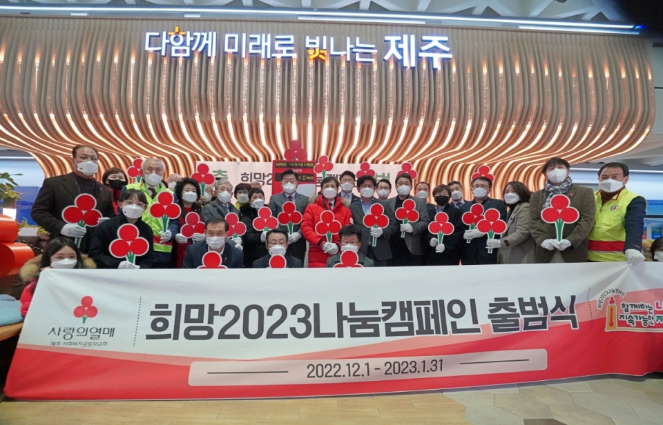 제주사회복지공동모금회는 30일 제주도청 로비에서 희망 2023 나눔캠페인 출범식과 모금액을 ‘사랑의 온도탑’ 제막식을 열었다. ‘함께하는 나눔 지속가능한 제주’를 슬로건으로 한 이번 캠페인은 12월 1일부터 내년 1월 31일까지 62일간 이어진다.