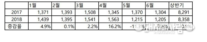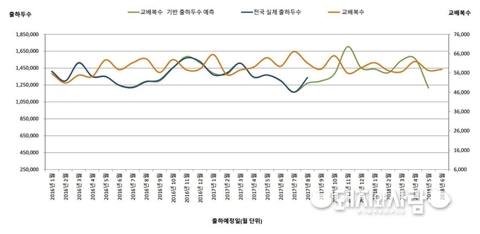 ▲ 2018년 상반기 월별 출하두수 예측 수치(교배복수 기반, 제공: 이지팜)