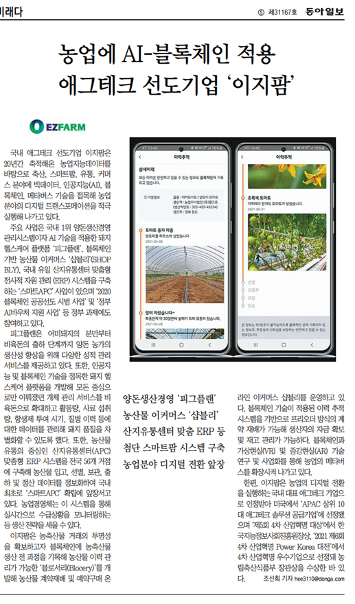 농업에 AI-블록체인 적용 애그테크 선도기업 ‘이지팜’